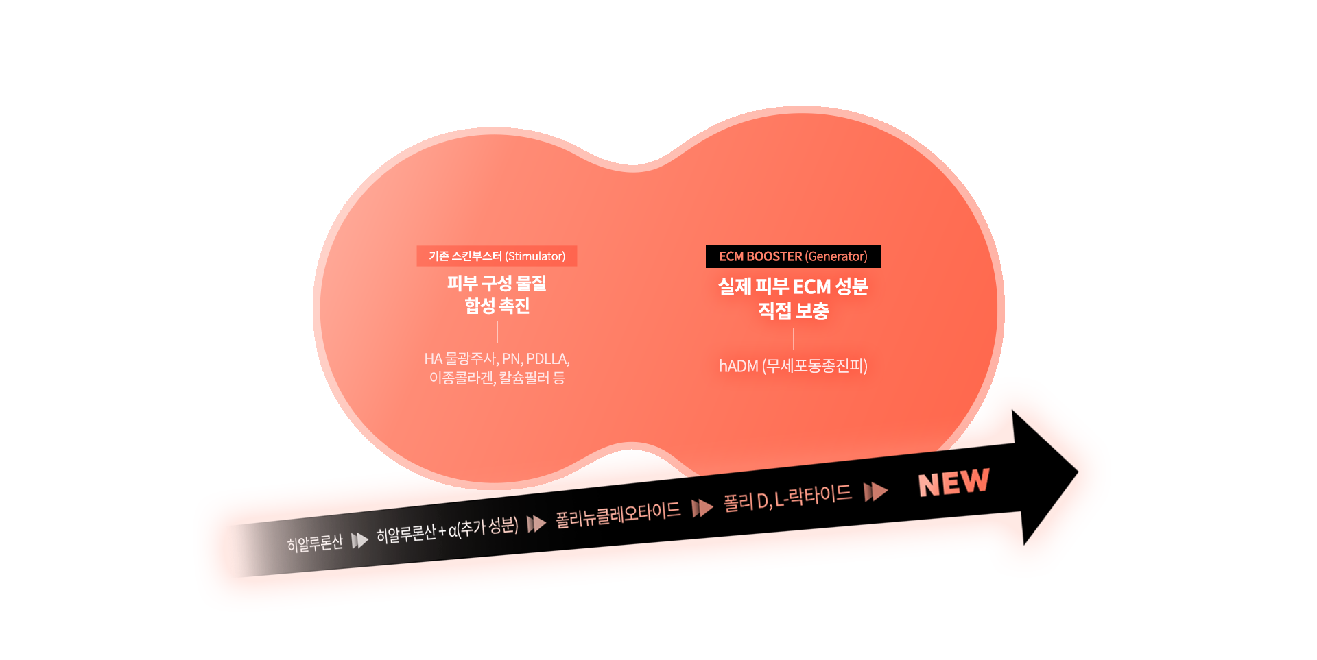 콜라겐, 엘라스틴, 히알루론산 등 실제 피부 ECM 성분으로