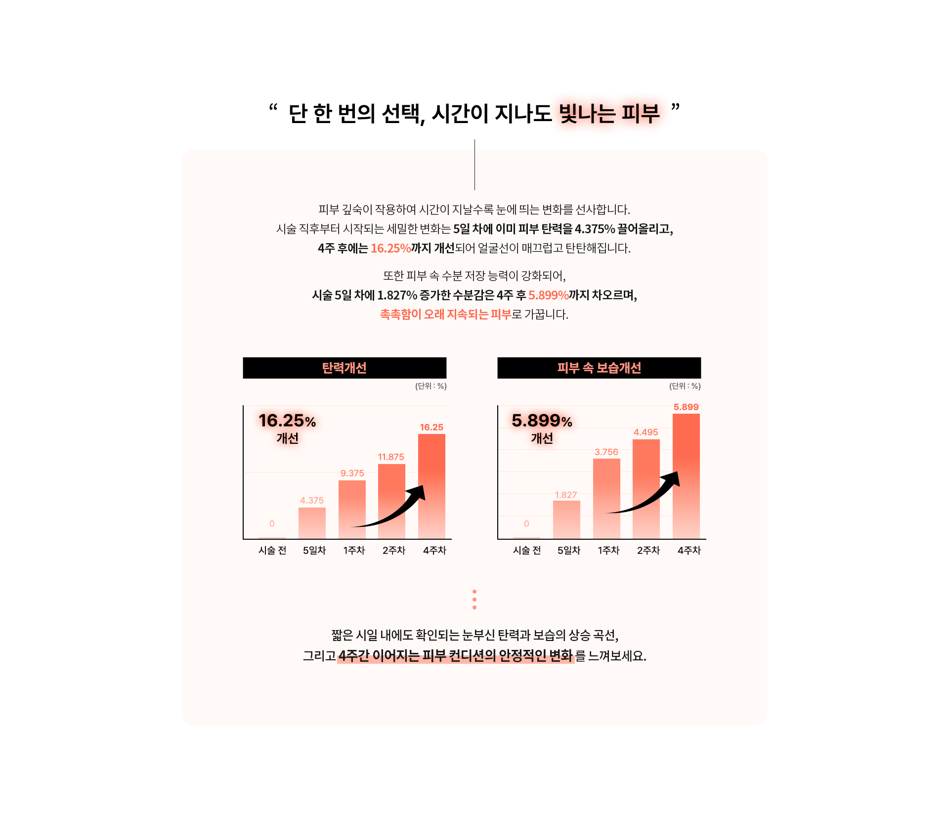 피부속 콜라겐과 엘라틴을 포함하여, 근본적인 피부 개선에 도움을 줍니다.
