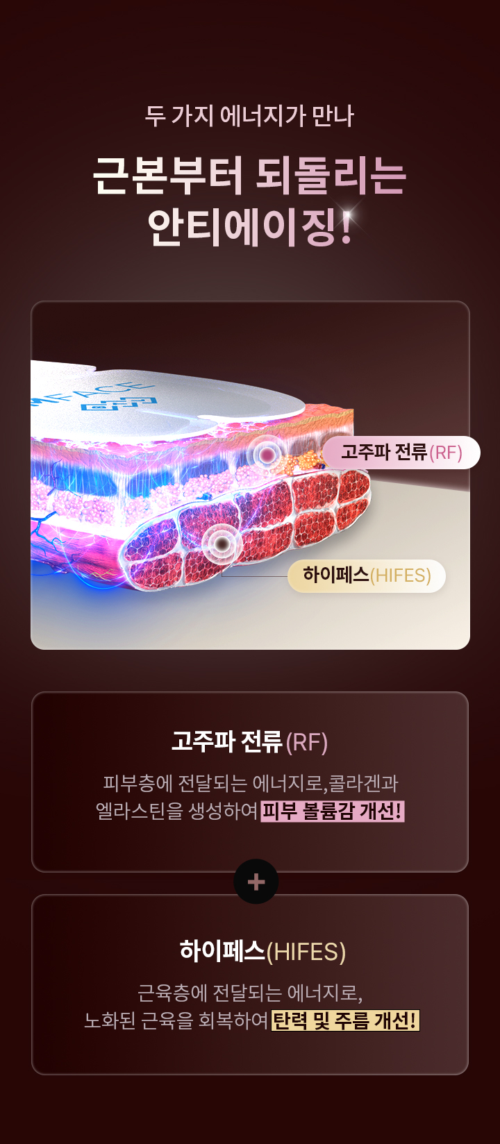 피부 속 조직까지 도달하는 강하고 효과있는 고주파 에너지